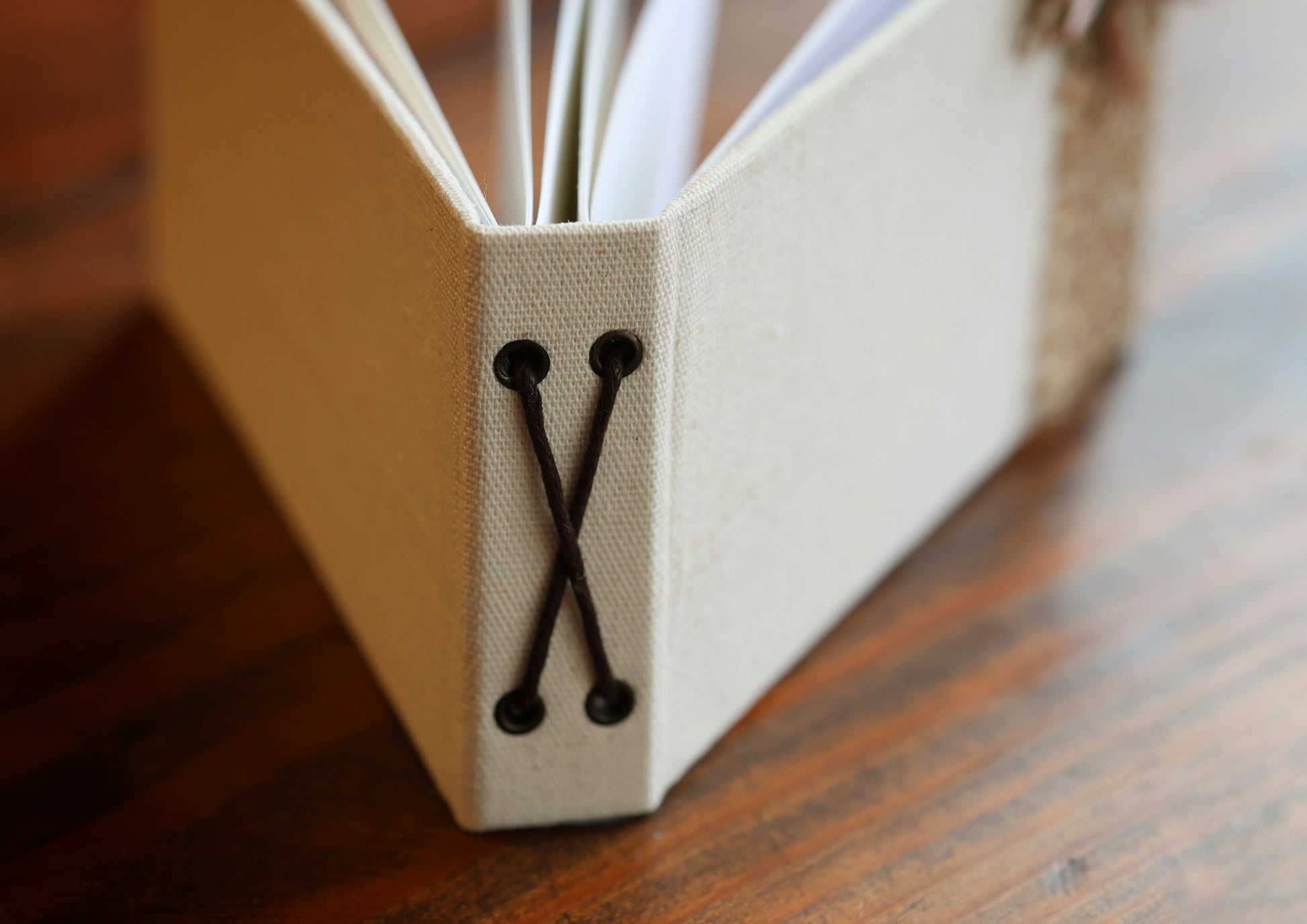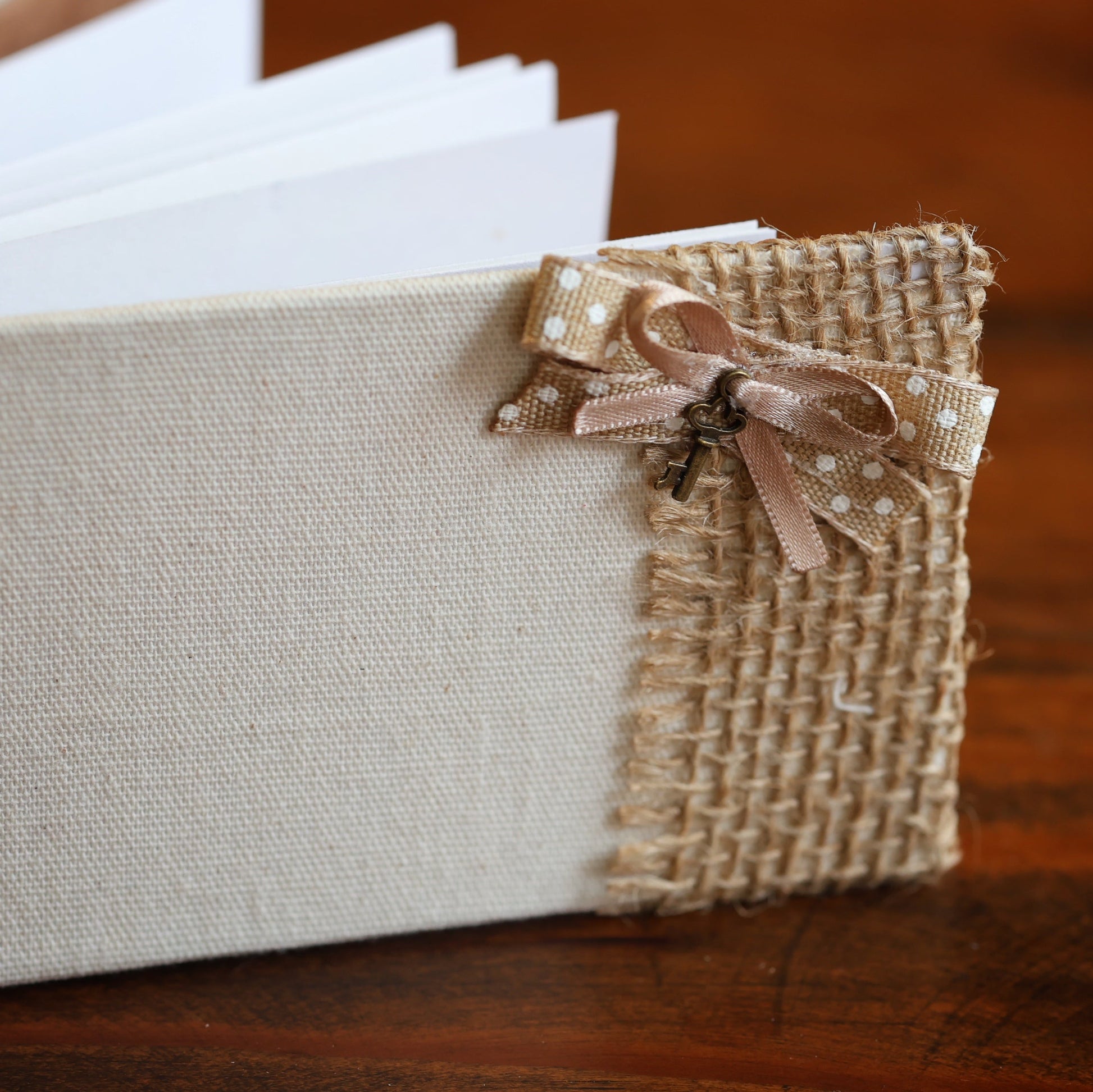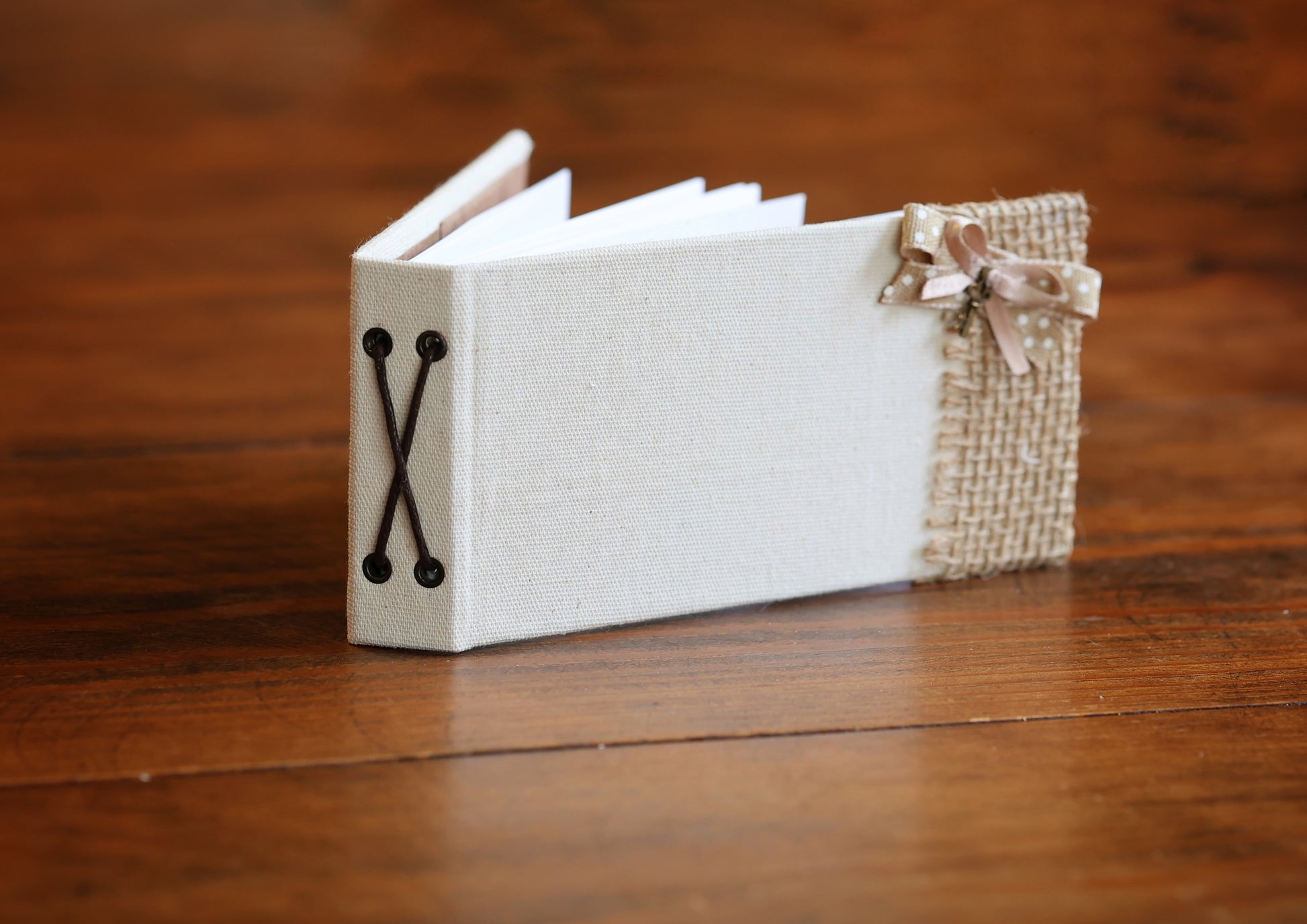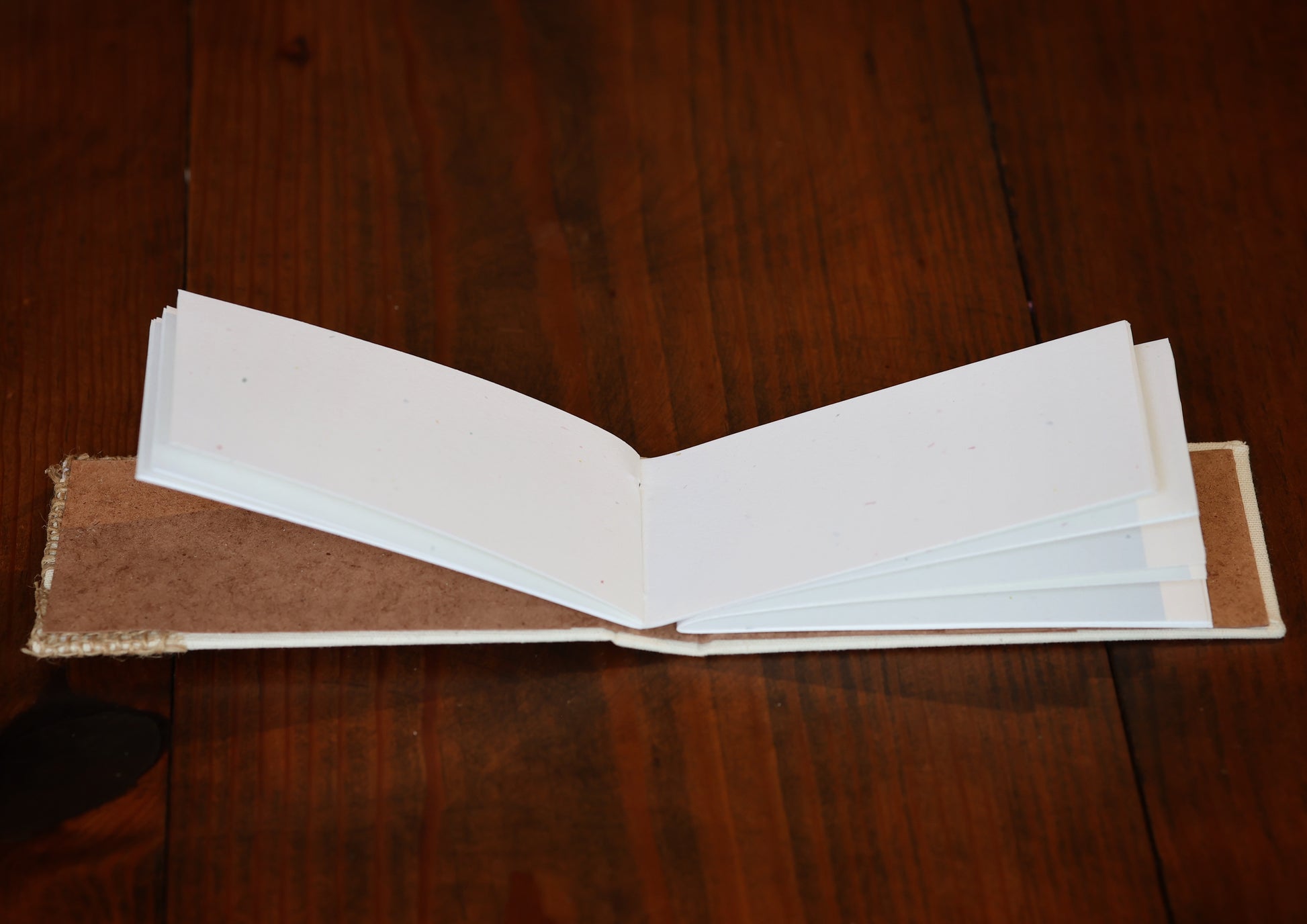 Libreta horizontal pequeña con aproximadamente 15 hojas blancas lisas. Hecho a mano.