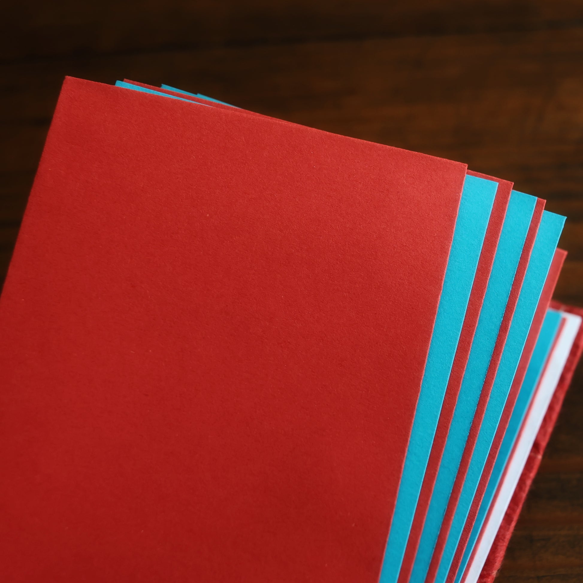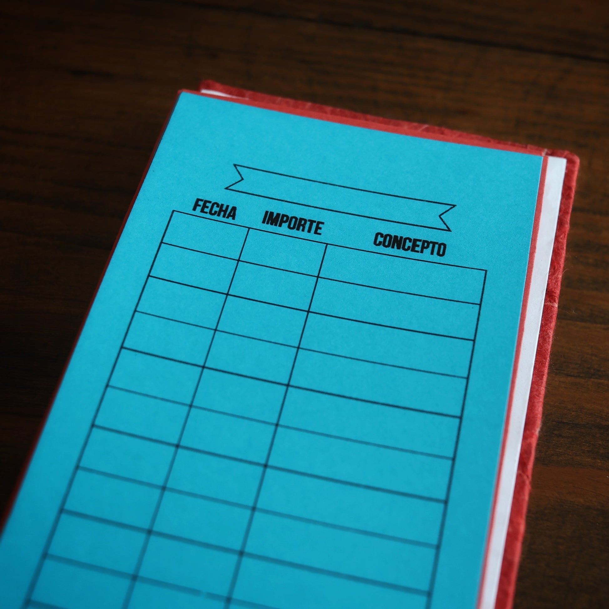 Organigastos con 5 sobres de billetes color rojo y tarjetas acua. Tiene pasta dura y argolla suelta de metal.