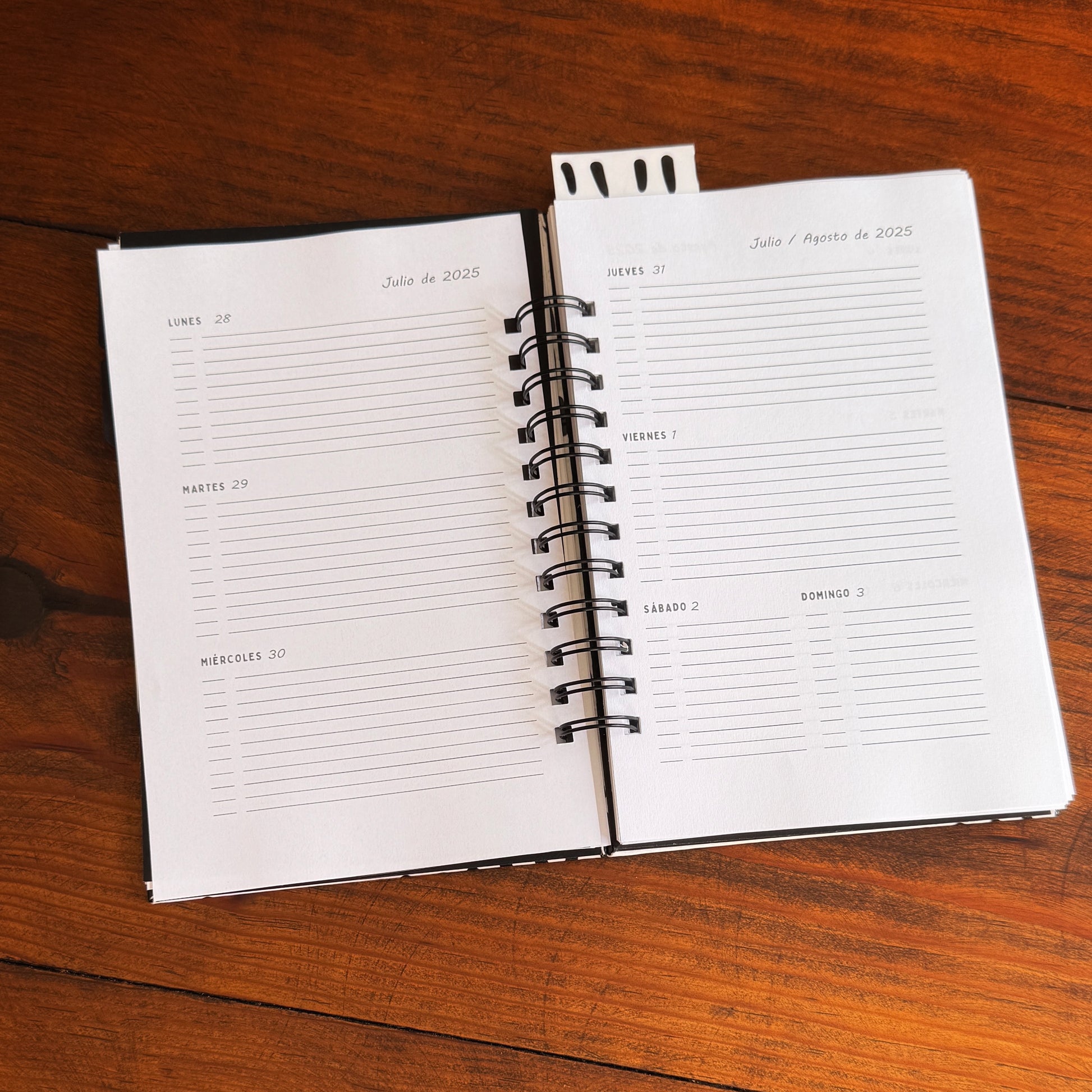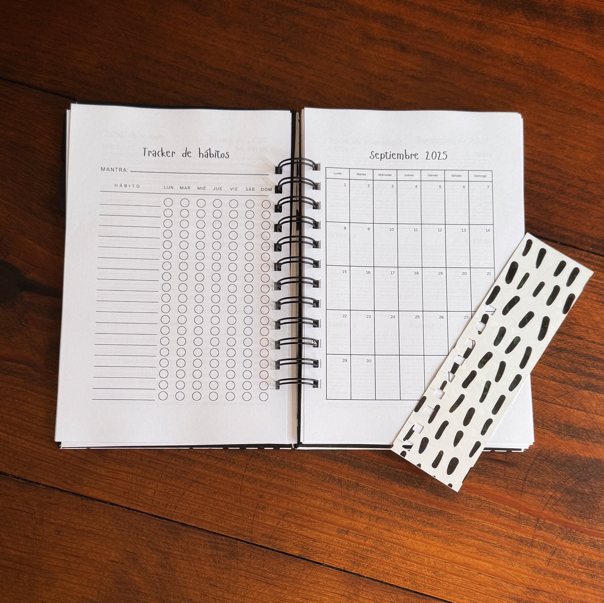 Agenda semanal escolar con calendario 2025-2026, cumpleaños, horario escolar y extracurricular, espacio para calificaciones, tracker de hábitos y notas. La semana completa está en dos hojas y se ve completa al abrir. Con fechas.